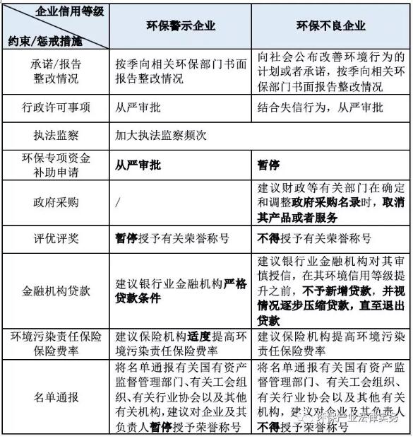 法律依據 《企業環境信用評價辦法(試行)》(2013) 第十五條 在上一年度,企業有下列情形之一的,實行“一票否決”,直接評定為“環保不良企業”: 。ㄒ唬┮驗榄h境違法構成環境犯罪的; 。ǘ┙ㄔO項目環境影響評價文件未按規定通過審批,擅自開工建設的; 。ㄈ┙ㄔO項目環保設施未建成、環保措施未落實、未通過竣工環保驗收或者驗收不合格,主體工程正式投入生產或者使用的; 。ㄋ模┙ㄔO項目性質、規模、地點、采用的生產工藝或者防治污染、防止生態破壞的措施發生重大變動,未重新報批環境影響評價文件,擅自投入生產或者使用的; 。ㄎ澹┲饕廴疚锱欧趴偭砍^控制指標的; (六)私設暗管或者利用滲井、滲坑、裂隙、溶洞等排放、傾倒、處置水污染物,或者通過私設旁路排放大氣污染物的; (七)非法排放、傾倒、處置危險廢物,或者向無經營許可證或者超出經營許可范圍的單位或個人提供或者委托其收集、貯存、利用、處置危險廢物的; 。ò耍┉h境違法行為造成集中式生活飲用水水源取水中斷的; 。ň牛┉h境違法行為對生活飲用水水源保護區、自然保護區、國家重點生態功能區、風景名勝區、居住功能區、基本農田保護區等環境敏感區造成重大不利影響的; 。ㄊ┻`法從事自然資源開發、交通基礎設施建設,以及其他開發建設活動,造成嚴重生態破壞的; 。ㄊ唬┌l生較大及以上突發環境事件的; 。ㄊ┍画h保部門掛牌督辦,整改逾期未完成的; 。ㄊ┮员┝Α⑼{等方式拒絕、阻撓環保部門工作人員現場檢查的; 。ㄊ模┻`反重污染天氣應急預案有關規定,對重污染天氣響應不力的。 第三十四條 對環保警示企業實行嚴格管理。 對環保警示企業,可以采取以下約束性措施: 。ㄒ唬┴熈钇髽I按季度向組織實施環境信用評價工作和直接對該企業實施日常環境監管的環保部門,書面報告信用評價中發現問題的整改情況; (二)從嚴審查其危險廢物經營許可證、可用作原料的固體廢物進口許可證以及其他行政許可申請事項; (三)加大執法監察頻次; 。ㄋ模⿵膰缹徟黝惌h保專項資金補助申請; (五)環保部門在組織有關評優評獎活動中,暫停授予其有關榮譽稱號; (六)建議銀行業金融機構嚴格貸款條件; (七)建議保險機構適度提高環境污染責任保險費率; 。ò耍⿲h保警示企業名單通報有關國有資產監督管理部門、有關工會組織、有關行業協會以及其他有關機構,建議對環保警示企業及其負責人暫停授予先進企業或者先進個人等榮譽稱號; 。ň牛﹪一蛘叩胤揭幎ǖ钠渌s束性措施。 第三十五條 建立健全環境保護失信懲戒機制。 對環保不良企業,應當采取以下懲戒性措施: 。ㄒ唬┴熈钇湎蛏鐣几纳骗h境行為的計劃或者承諾,按季度向實施環境信用評價管理和直接對該企業實施日常環境監管的環保部門,書面報告企業環境信用評價中發現問題的整改情況; 改善環境行為的計劃或者承諾的內容,應當包括加強內部環境管理,整改失信行為,增加自行監測頻次,加大環保投資,落實環保責任人等具體措施及完成時限。 。ǘ┙Y合其環境失信行為的類別和具體情節,從嚴審查其危險廢物經營許可證、可用作原料的固體廢物進口許可證以及其他行政許可申請事項; (三)加大執法監察頻次; 。ㄋ模⿻和8黝惌h保專項資金補助; 。ㄎ澹┙ㄗh財政等有關部門在確定和調整政府采購名錄時,取消其產品或者服務; (六)環保部門在組織有關評優評獎活動中,不得授予其有關榮譽稱號; 。ㄆ撸┙ㄗh銀行業金融機構對其審慎授信,在其環境信用等級提升之前,不予新增貸款,并視情況逐步壓縮貸款,直至退出貸款; (八)建議保險機構提高環境污染責任保險費率; 。ň牛⿲h保不良企業名單通報有關國有資產監督管理部門、有關工會組織、有關行業協會以及其他有關機構,建議對環保不良企業及其負責人不得授予先進企業或者先進個人等榮譽稱號; (十)國家或者地方規定的其他懲戒性措施。 保護環境是企業的法定義務,包裝印刷企業應當嚴格遵守法律,認真履行生態環境保護的社會責任。環境違法行為給企業帶來的將是生產經營上的重重阻礙,只有樹立綠色環保的生產管理理念,企業才能基業長青!