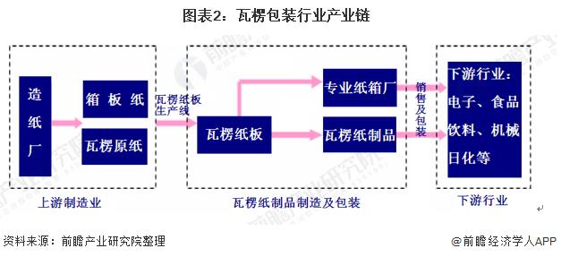 瓦楞紙箱是指使用瓦楞紙板經(jīng)過印刷、模切、釘箱或糊盒制成的包裝用紙容器。作為一種外包裝,瓦楞紙箱主要起到運(yùn)輸過程中的儲(chǔ)存、保護(hù)作用,其印刷內(nèi)容可還起到美化外觀、展示產(chǎn)品、廣告宣傳的作用。與金屬、塑料、玻璃包裝產(chǎn)品相比,瓦楞紙箱廢棄物較少、易于回收再利用,并且印刷時(shí)主要采用無毒易分解的環(huán)保水性油墨,是公認(rèn)的“綠色包裝產(chǎn)品”,廣泛地應(yīng)用于家電、電子產(chǎn)品、IT、食品飲料、圖書、日化、紡織品等下游行業(yè)中。 瓦楞包裝屬于紙包裝的一種,是指用紙和紙板等原材料,進(jìn)一步加工制成紙制品的生產(chǎn)活動(dòng);并利用加工制造出來的瓦楞紙、紙板、紙箱、紙盒等進(jìn)行相關(guān)行業(yè)產(chǎn)品包裝服務(wù)的一系列活動(dòng)。 瓦楞包裝行業(yè)受原材料價(jià)格影響較大 箱板瓦楞紙包裝行業(yè)作為典型的中游行業(yè),以上游造紙企業(yè)生產(chǎn)的箱板瓦楞紙?jiān)堊鳛樵牧希瑢⑼呃慵埾洚a(chǎn)成品提供給下游食品飲料、電子、家電等消費(fèi)領(lǐng)域公司以及物流快遞公司。