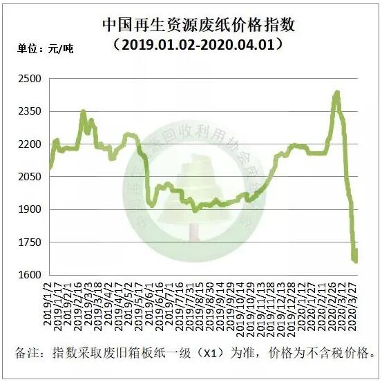 受疫情及下游造紙行業(yè)調(diào)整影響,2020年第一季度國(guó)內(nèi)回收紙行業(yè)收到較大的沖擊,對(duì)造紙行業(yè)產(chǎn)量及包裝紙價(jià)格的影響,也比較劇烈。 一季度回收紙總量下降35%,營(yíng)收下跌37% 根據(jù)中國(guó)再生資源回收利用協(xié)會(huì)廢紙分會(huì)調(diào)查顯示: 2020年一季度國(guó)內(nèi)回收紙行業(yè)回收總量約為800萬(wàn)噸,同比下降約35%;營(yíng)業(yè)收入約為172億元,同比下降約37%。 企業(yè)數(shù)量約減少30%,規(guī)模企業(yè)復(fù)工率達(dá)到90%,小微企業(yè)退出較多,從業(yè)人員同比減少40%。 一季度回收紙平均價(jià)格為2156元/噸,同比下降2.3%。 3月受造紙行業(yè)價(jià)格調(diào)整影響,回收紙價(jià)格20天內(nèi)從2450元/噸跌至1650元/噸,跌幅超過(guò)32%。