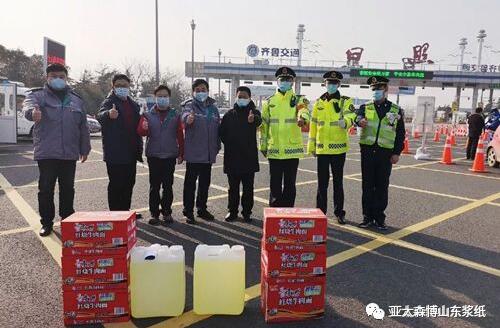 03、守望相助,向國(guó)內(nèi)外客戶寄送口罩6萬(wàn)多枚 疫情期間,湖北地區(qū)的客戶急缺口罩,了解這一情況,在自身物資也很緊張的情況下,亞太森博急客戶之所急,協(xié)調(diào)各方資源籌集口罩,第一時(shí)間為湖北4家客戶捐贈(zèng)了6200只口罩,緩解了客戶的燃眉之急,做到了雪中送炭。 疫情期間,亞太森博已經(jīng)累計(jì)為國(guó)內(nèi)外客戶捐贈(zèng)了63600只口罩。 04、黨員、志愿者支持疫情防控一線 疫情期間,公司防疫領(lǐng)導(dǎo)小組、黨委、志愿者協(xié)會(huì)積極組織黨員和志愿者為疫情防控一線服務(wù)。2月,公司組織部分黨員和志愿者走訪了日照城區(qū)主要高速公路出口防控檢查站,慰問(wèn)堅(jiān)守在疫情防控一線的公安、交通、衛(wèi)生防疫等執(zhí)勤人員,向他們表達(dá)最誠(chéng)摯的敬意并捐贈(zèng)消毒液、防疫器材和食品等,為他們加油鼓勁。3月,公司組織志愿者為籌備開學(xué)的學(xué)校送去了消毒液等稀缺物資。