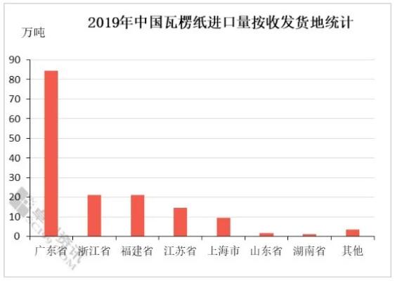 2019,廣東省進口量位居全國之首 2019年,中國瓦楞紙進口收發地主要集中在廣東省、浙江省、福建省、江蘇省,進口量分別為84.51萬噸、21.20萬噸、21.09萬噸、14.70萬噸。 其中2019年中國廣東省進口量位居首位,占總進口量的53.68%,另外浙江省為2019年中國瓦楞紙進口收發地的次位,占比為13.47%,其余省份占比略小。