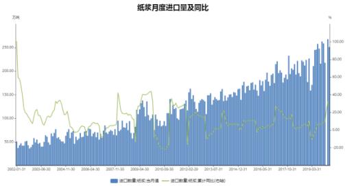 2020年4月以來(lái),紙漿期貨主力合約走出一段流暢的趨勢(shì)性下跌行情。截止5月15日,SP2009合約自最高4694元/噸下跌至最低4370元/噸,累計(jì)跌幅約6.9%。就紙漿這樣一個(gè)價(jià)格已處在相對(duì)底部、波動(dòng)較小的品種而言,已經(jīng)算是一波較為有力的趨勢(shì)性行情了。本文旨在回顧此輪下跌中紙漿基本面的變動(dòng),并結(jié)合目前的態(tài)勢(shì)探究未來(lái)趨勢(shì)性行情的可能。 一、供應(yīng) 海關(guān)數(shù)據(jù)顯示,2020年4月,我國(guó)共進(jìn)口紙漿251.40萬(wàn)噸,環(huán)比下降6.19%,同比增加19.32%;進(jìn)口金額為1308500000美元;平均單價(jià)為520.49美元/噸,環(huán)比增加1.69%,同比下降25.95%。2020年紙漿進(jìn)口量及金額累計(jì)比去年同期分別上升28.75%、-8.06%。PPPC 數(shù)據(jù)顯示(疫情影響下全球發(fā)運(yùn)量等數(shù)據(jù)只更新至2月),2月全球紙漿發(fā)運(yùn)量379.80萬(wàn)噸,較1月(修正數(shù)據(jù)為399.30 萬(wàn)噸)下降 4.88%,較去年同期下降0.20%;庫(kù)存42天,較上月增加3天,較去年同期減少13天(去年同期修正數(shù)據(jù)為55天)。 其中,針葉漿發(fā)運(yùn)量為183.6萬(wàn)噸,針葉漿庫(kù)存37天,相較去年同期小幅下降。