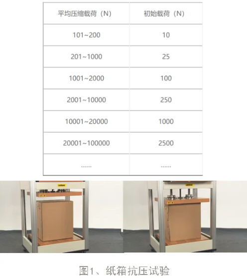 表2.瓦楞紙板的三種波形優劣勢 2、瓦楞紙箱的長、寬、高 在瓦楞用紙的材質與楞形、波形一致的情況下,成品紙箱的長寬高設計與其抗壓強度有著緊密的聯系。根據經驗,瓦楞紙箱的長寬之比在1~1.8之間,對其抗壓強度的影響最小,僅為±5%,當二者比例為1.5左右時,紙箱的抗壓強度最高[1]。 此外,紙箱的高度不宜過高,應控制在350~650mm之間[2],當高度增加時,不穩定性驟增,抗壓強度也會隨之下降。因此在設計紙箱的尺寸時,宜綜合考量三方比例,既保障紙箱具有良好的抗壓強度,又能減少成本的浪費。 3、印刷工藝 在重視品牌宣傳的今天,瓦楞紙箱的印刷設計越來越受到重視,殊不知,印刷工藝在一定程度上也會造成成品紙箱抗壓強度的下降。主要體現在兩個方面: (1)印刷壓力的影響。傳統印刷過程會對瓦楞紙板施以一定的壓力,若壓力過大則易將瓦楞壓潰,使其失去原有的抗壓功能; (2)油墨的浸潤影響。油墨是印刷工藝不可或缺的組成部分,但它會對瓦楞紙板表面產生浸潤作用,嚴重降低紙箱的抗壓強度。當印刷面積大以及套印次數多的時候,則會使這種浸潤作用更加明顯。 三、環境因素——濕度影響 根據上述介紹,瓦楞紙箱因采用吸水性很強的纖維材料,極易吸收水分,引起抗壓強度的下降。除了加工過程中對材料含水量的控制外,生產環境、存放環境、使用環境、天氣、等因素都有可能造成瓦楞紙箱的高濕環境。 根據研究資料的分析,相對濕度從40%上升到60%,抗壓強度下降的幅度最大,達到17%;其次是相對濕度80%至90%區間,抗壓強度下降了10%;下降幅度最小的是60%至80%區間,為7%[3]。因此,可以看出,瓦楞紙箱周圍的濕度越大,抗壓強度的損失也就越大。 四、瓦楞紙箱抗壓強度的精確測算 之前已經介紹過經典的抗壓強度計算公式——凱利卡特公式,雖然精確度已獲公認,但不可否認,這是一個基于靜態因素的測算公式,無法反映出成型工藝、印刷設計和環境因素的動態影響,經此公式測算的抗壓強度與實際仍有一定差距。因此,現代企業更多的是利用紙箱抗壓試驗機進行精確測量。標準GB/T4857.4-2003《包裝運輸包裝件基本試驗》規定了抗壓強度的測試方法,下面結合XYD-15K紙箱抗壓機進行簡單介紹。 抗壓試驗的基本原理是將試驗品放置于紙箱抗壓機的壓板之間進行加壓,直至試樣損壞或達到預定載荷和位移值時為止。由此衍生為三種抗壓試驗模式,即“定壓力測形變”、“定形變測壓力”和“壓潰”。具體方法如下: 1、試樣溫濕度預處理。將樣品箱置于23℃,50%RH的環境下4小時進行試樣調節。 2、將預處理后的試樣封裝好,放置在紙箱抗壓機的下壓板中心。若采用“定壓力測形變”模式,則需設置預定壓力(“定形變測壓力”模式則需預設形變量)、初始載荷值等參數,并調整高度參數至試樣高度值,其中初始載荷值的設定是為了使上壓板與試樣達到充分接觸,可參照表3進行設置。啟動試驗,上壓板在系統的控制下以適當的速度向下運行,當試樣所受的壓力達到初始載荷值時,位移量自動清零,當壓力繼續增大至設定壓力值時,儀器自動結束試驗,并顯示試樣的變形量。而“壓潰”模式則無需壓力和位移量設置,試樣所承受的壓力值曲線不斷上升,在試樣壓潰的節點達到峰值后開始下降,當壓力值降到最大值的70%時,自動結束試驗。 表3初始載荷值