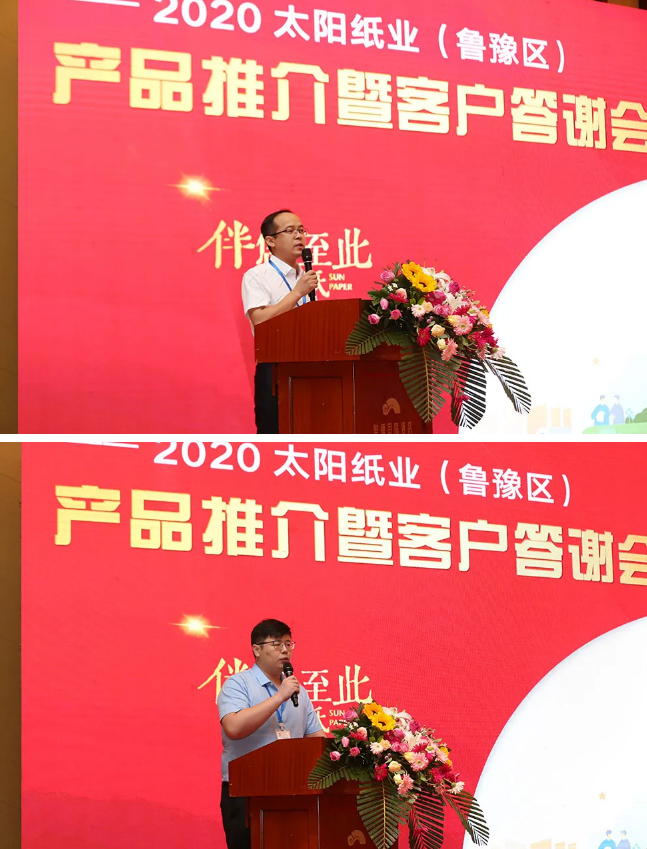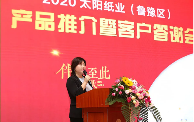8月11日,“伴您至此 不止于紙”——太陽紙業(魯豫區)產品推介暨客戶答謝會在山東圣德國際酒店熱烈舉辦。公司副董事長李娜、副總經理劉澤華及魯豫區100余位文化用紙優質客戶出席會議。