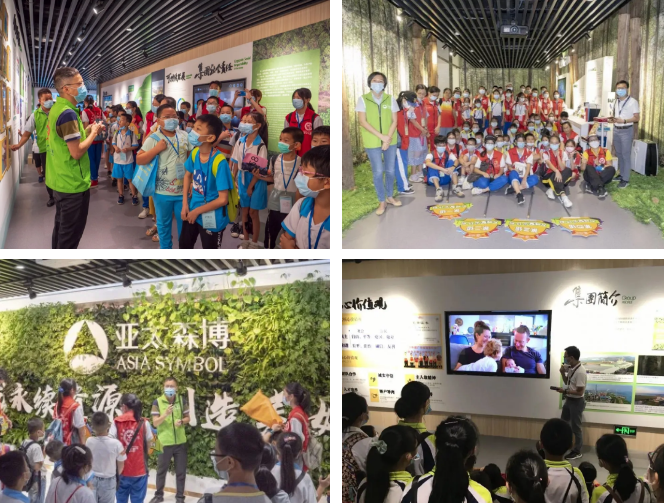 同學們下車后有序進入展廳 “一張紙是怎么來的?”展廳介紹人員一開場就向同學們提問!皹洹⑻J葦、竹子……”同學們紛紛搶答!捌鋵,紙來源于大自然,一棵種子通過吸收二氧化碳和水分,釋放人類需要的氧氣,通過5年就可以長成紙張的原材料”,在展廳講解員的循循引導下,同學們對紙張怎么來的,有了更深刻的認識。 在亞太森博的展廳,同學們了解到新加坡金鷹集團是全球領先的林漿紙一體化企業,并秉承負責的態度,可持續的理念,每天種植100萬棵樹。當聽到100萬棵樹時,同學們都為之驚訝。代言人還向同學們講解了紙的生產流程、我們的環保措施……同學們都聽得津津有味。