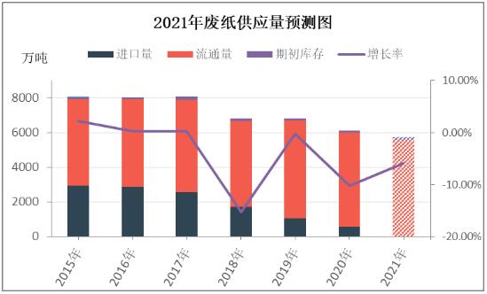 導語:2021年進口廢紙數量將清零,那么國內廢紙期初庫存、流通量將有何變化?
