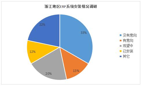 進入數字化時代,許多傳統企業紛紛跳出原有發展模式,引入ERP管理系統,通過其“供應鏈管理”的核心思想,幫助企業改善業務流程、提高企業核心競爭力。那么在包裝行業,工廠安裝ERP系統的情況是如何?三級廠老板對ERP系統接受度又是如何? 近日,包裝產業聯盟對浙江地區近300家三級廠的ERP系統安裝情況進行了抽樣調研,以進一步了解該地區工廠ERP系統安裝情況,及地區工廠老板對于ERP系統所持態度。 數據顯示,完全沒有意向的工廠達100家,占調查樣本的三分之一;而尚在觀望中的工廠有60余家,占比20%;有安裝意向的工廠不到40家,僅占比13%;已有ERP系統的工廠約35家,占比只有12%。