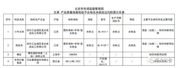 不合格名單中的蘇州工業(yè)園區(qū)亞太紙品加工有限公司在2020年還曾在北京市市場(chǎng)監(jiān)督管理局的抽檢中,生產(chǎn)的小作文本和雙線本兩批次產(chǎn)品抽檢不合格,問題都是“亮度(白度)、標(biāo)識(shí)和使用說明”。