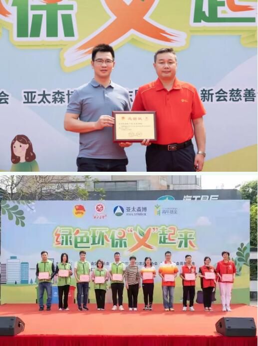 活動啟動儀式上團區委袁社燦副書記為亞太森博(廣東)紙業有限公司頒發了熱心公益企業感謝狀,新會區慈善會林玉燕秘書長為活動十大“環保使者”頒發了榮譽證書。