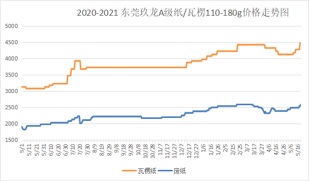 5月20日,國廢市場漲勢依舊迅猛,玖龍五大基地統一上調,理文、山鷹各基地緊隨其后,華中、華南、華東各中小紙企集中跟漲,幅度在20-100元/噸。 玖龍系東莞基地黃板紙A級報價2590元/噸,太倉黃板紙A級報價2420元/噸;山鷹系漳州基地黃板紙A級報價2510元/噸;理文系重慶基地黃板紙一級報價2250元/噸。 近幾日玖龍基地持續拉漲廢紙價格,漲勢隨即席卷全國,各紙企積極跟漲。當前市場雖統一漲勢,但近期廢紙到貨并未明顯增多,打包站對后市看漲心態依舊較濃,紛紛轉為觀望,紙企到貨未達預期。 原紙走勢解讀