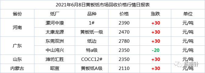 7日箱板及瓦楞原紙市場河南地區紙企上調50-100元/噸,8日華南市場少數紙企有50元/噸的下跌,當前市場整體依舊堅挺,華南受疫情影響,訂單不足。 在規模紙企的挺價下,市場整體仍多偏強整理,其中華南地區因疫情管控較嚴,進出車輛減少,部分中小紙企訂單情況降溫,紙廠小幅下調原紙價格,除華南地區外,其余地區繼續探漲。原料方面,電商節期間下游訂單表現雖不足,但廢紙價格持續上漲,盡管漲價預期受需求拉動的幅度有限,但在原料的高成本面前,紙廠挺價心態尚存。 行情預測 富寶預測:整體來看,8日國廢市場繼續偏強運行,主要集中山東、江蘇、河南等地上調20-90區間,近期廢紙市場供應偏緊,廠家采購興趣有所提升,紙廠到貨情況個別不夠日耗。成品方面,除華南地區,其他市場均表現正常出貨,國廢市場大廠觀望情緒較多,各廠多根據自身到貨小幅調整,預計短期國廢市場暫以小幅上調為主。 6月8日紙廠調價 【華東地區】 ●6月8日江蘇淮安永豐紙業廢紙調價信息 6月8日起江蘇淮安永豐廢紙價格部分上調,執行:純黃2320,80%黃板2150,50%黃板1950,20%黃板1830,灰黃板1750,單灰1750,大-彩管2000,工業管1540,雙灰1540,無水無雜扣點輕。 ●6月8日江蘇灌云利民紙業廢紙調價信息 6月8日起江蘇灌云利民廢紙價格上調20,調后:a級紙2250、B級紙2170,C級2090,D級1990。 ●6月8日浙江華川實業(原義烏義南紙業)廢紙調價信息 6月8日起浙江華川實業純大管漲50,執行:A-級2330,C級2200,統貨2120,純大管2050,純小管1890,管子1760。 ●6月8日浙江和泓環保紙業調價信息 6月8日起浙江和泓環保紙業廢紙下調30,執行:青板2280元/噸,黃板含量大于95%。一級黃板,2270元/噸,二級A,2200元/噸,二級B,2100元/噸,二級通紙,2150元/噸,三級A,2050元/噸,三級B,1950元/噸,三級通紙,2000元/噸,灰黃板A,2050元/噸,灰黃板B,2000元/噸,灰黃板C,1950元/噸。 ●6月8日山東濰坊匯勝廢紙調價信息 6月8日起山東濰坊匯勝廢紙上調30,COCC12#執行2350元/噸;COCC11#執行2260元/噸;COCC11#B執行2190元/噸;COCC11#C執行2180元/噸;廢紙(CG)執行1970元/噸;廢紙(BTG/PG)執行1870元/噸。 ●6月8日山東平原匯勝廢紙調價信息 6月8日起山東德州平原匯勝價格上調30,COCC11#D(通貨)執行1960;COCC11#執行2280. ●6月8日山東大展廢紙調價信息 6月8日起煙臺大展紙業廢紙價格上調30,執行:雙A2300,a級2230,B級2180,C級2040. ●6月8日山東威海龍港紙業廢紙調價信息 6月8日起山東威海龍港紙業廢紙價格上調40,原料價格調整為:工業紙箱2360,皮紙2290元,A-級2220元,B級2120元,C級1960元,供貨商要確保原料質量。 ●6月8日安徽馬鞍山山鷹廢紙調價信息 6月8日起安徽山鷹黃廢E級上調50,調后(機械打包)價格為:電器廠紙(A-級)2450,壹級紙(B級)2410,超市紙C級2250,小超市紙(D級)2200,貳級紙(E級)1990,書本紙2180,小花2150. 【華中地區】 ●6月8日河南漯河中濠廢紙調價信息 6月8日起河南中濠紙業價格上調30,甲牛2990,牛卡2740,1#2390,1#負2350,2#2300,通貨2220. ●6月8日河南新鄉亨利廢紙調價信息 6月8日河南新鄉亨利紙業上調40,價格執行:AA-級2400,A-級2385;B級2310;C級和花紙邊2210;D級2110. ●6月8日河南新鄉鴻達廢紙調價信息 6月8日起新鄉鴻達廢紙上調40,一級(黃板含量90%以上)2270,二級(黃板含量60%至90%)2190,花紙邊2190。 ●6月8日河南太康龍源廢紙調價信息 6月8日起河南太康龍源紙業上調30,執行:調后特級及紙邊2500,一級2470,二級2380,通貨、啤酒箱2320,花紙箱2220,花雜紙及單層涂布紙1500 ●6月8日河南許昌宏偉老工貿廢紙調價信息 6月8日起許昌宏偉工貿紙業廢紙上調,價格:純黃紙工廠紙起扣1個,一級90以上黃紙含量起扣2個價格2360,二級60以上黃紙含量起扣6個價格2280,3級40以上黃紙含量起扣8個價格2150,四級純花紙起扣10個,價格2020。 ●6月8日湖南衡山新金龍紙業廢紙調價信息 6月8日起衡山新金龍廢紙上調30-40,執行:A-級2330,B級(含啤酒箱)2270,C級2200,D級2120,紙芯管1500(扣2-5個點),以此價格為準。 ●6月8日湖南瀏陽大瑤天和紙業廢紙調價信息 6月8日起瀏陽市天和紙業白廢類下調20,價格調整為白廢類:單頁2280,一級撕皮(去膠)書2230,二級撕皮(去膠)書2180,統書2030,散書紙低20元/噸。黃板類:A-級包(純黃)2350,B級包(80%)2270,C級包(70%)2170,散裝全黃瓦楞箱2270 【華南地區】 ●6月8日廣東東莞金田廢紙調價信息 6月8日起廣東東莞金田紙皮價格上調30,其他不變,執行:一級紙皮2560,紙皮A類2460;紙皮統貨A-級2420,紙皮統貨B級2360;坑卡A-級2110;坑卡B級2080;廠包純坑卡及薄灰2250;大小花2050;一級辦公用紙及報紙2380,書本紙(切邊去封面)2380。 ●6月8日廣東東莞雙洲廢紙調價信息 6月8日起東莞雙洲紙業廢紙上調30,執行:紙邊2780;紙皮2770;大牛卡、商場超市紙等2730;啤酒箱2690;坑卡2610;花雜紙皮2530;卡紙2210;車間紙筒2100;末剝紙筒1900;雙灰廢紙筒1600;大炮紙筒650。(散紙少20,箱車/圍欄/梱紙少10) ●6月8日廣東中山鴻興、永發廢紙調價信息 6月8日起中山永發紙業廢紙價格不變:特a級2370,特級(B級)2340、純黃紙皮(C級/大統)2310、純啤酒箱2310、純彩箱(統貨)2310,純坑卡2280;中山聯合鴻興廢紙下調20:特a級2350、特級(B級)2320,純黃紙皮(C級/大統)2290、純啤酒箱2290、純彩箱(統貨)2290、純坑卡2240 【華北地區】 ●6月8日內蒙古昭宣紙業廢紙調價信息 6月8日起內蒙古昭宣紙業廢紙上調30,調后AA-級手撿板2190,A-級2110,B級2050,C級1930。 【東北地區】 ●6月8日遼寧撫順琥珀廢紙調價信息 6月8日起遼寧琥珀B級上調50,執行:A+
