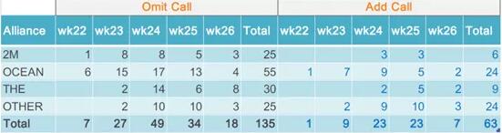 正如預期的那樣,鹽田港是該地區受影響最嚴重的港口,被跳港128次。據容易船期稱,第24周(6月6日至12日)跳港次數最多,達到45次,但在接下來的兩周內逐漸減少。 與此同時,南沙和蛇口作為鹽田的“后備”港口,南沙被加靠了32次,蛇口被加靠了12次。香港跳港2次加靠2次,幾乎沒有多少影響。