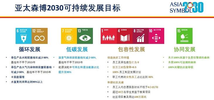公司積極響應聯合國可持續發展目標和國家“2030碳達峰、2060碳中和”的雙碳目標,制定并發布了公司2030可持續發展目標,目標圍繞循環發展、低碳發展、包容性發展和協同發展四大方向展開,致力于為制漿造紙行業面臨的環境和社會挑戰提供可持續解決方案,助推行業實現可持續發展。