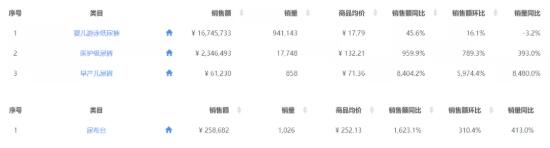 數(shù)據(jù)來源:Early Data 03、早產(chǎn)兒尿褲、醫(yī)護(hù)尿褲、尿布臺(tái)…… 品類愈細(xì)分,增速愈迅猛 據(jù)愛魔鏡市場(chǎng)情報(bào)數(shù)據(jù)顯示,綜合淘寶、天貓兩大平臺(tái),2021年1-8月,兩大核心品類中紙尿褲銷售額達(dá)71.16億,同比下降10.2%;拉拉褲銷售額達(dá)60.95億,同比增長(zhǎng)28.5%。 同時(shí),一些極為細(xì)分且小眾的尿褲品類呈現(xiàn)高速增長(zhǎng),嬰兒游泳尿褲銷售額為1674.6萬,較去年同比增長(zhǎng)45.6%;醫(yī)護(hù)級(jí)尿褲銷售額為234.65萬,同比增長(zhǎng)959.9%;早產(chǎn)兒尿褲銷售額為6.12萬,同比增長(zhǎng)8404.2%;嬰兒尿褲“周邊”用品尿布臺(tái)銷售額同比增長(zhǎng)413%。作為兼具輕松更換紙尿褲的“神器”受到眾多寶媽的歡迎。
