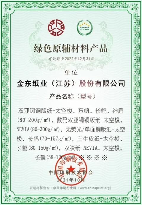 APP旗下海南金海漿紙業有限公司、金東紙業(江蘇)股份有限公司、金華盛紙業(蘇州工業園區)有限公司共同入選《綠色原輔材料產品目錄》。