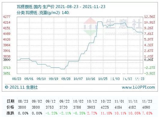 分析:周初瓦楞紙價格仍處下行走勢,山鷹、玖龍、理文等紙業巨頭逐漸放棄高位紙價的想法,選擇讓利于客戶。再加之煤炭價格下調,生產成本也隨之回調。目前市場氛圍比較冷淡,需求過低,導致原紙廠家庫存逐漸上升,因此瓦楞紙價格下調,提升出貨量。