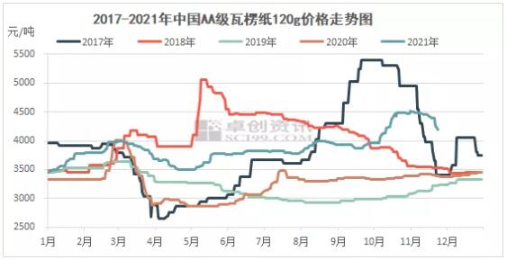 2017-2021年瓦楞及箱板紙市場呈“沖高-寬幅震蕩-蓄力上行”的態勢,其中2017年受禁廢令影響,瓦楞及箱板紙價格一度攀升,其中瓦楞紙達到5400元/噸,箱板沖破6000元/噸大關,形成了箱板紙市場的天花板;2018-2020年價格寬幅震蕩,主要受中美貿易摩擦及公共衛生事件影響;2021年,受外廢進口清零,加之全球通脹大環境,國內“十四五”、雙碳政策的大背景,加上能源、廢紙等成本增加,整體價格處于上行通道。 瓦楞紙及箱板紙市場概述 2021年瓦楞紙及箱板紙市場處于平穩發展階段,隨著規模紙企新增項目的投產,瓦楞及箱板紙產能集中度有上升勢頭,從供需格局來看,2021年瓦楞及箱板紙供應略大于需求,箱板紙較瓦楞紙供應壓力凸顯。2022-2023年箱板紙產能集中投放,供應壓力有繼續增加趨勢。 從生產特點來看,瓦楞紙生產企業相較箱板紙分散,其中規模紙企多具備瓦楞及箱板紙均可生產的能力,國內最大紙企瓦楞及箱板紙產能達到近2000萬噸,生產企業分布在華南、華東、華北等沿海地區。受到近幾年政策面及原料面影響,紙廠新增項目往廣西、湖北、貴州等地延伸。 瓦楞紙及箱板紙價格趨勢分析 2021年瓦楞紙市場走勢呈現“漲—降—漲-降”的走勢,整體市場偏強運行。據卓創資訊數據監測:截至11月24日,中國AA級瓦楞紙120g市場均價在3882元/噸,同比上漲18.47%。其中高點出現在10月4494元/噸,低點出現在年初3474元/噸,高低價差在1020元/噸,波幅達到29.36%。影響紙價的主要因素有:首先,原料供應緊張,帶動成本增加。其次,規模紙廠政策導向明顯,對市場價格走向起到指引作用。再次,受全球公共衛生事件反復影響,2021年整體船運較為緊張,且海運費及國外瓦楞紙價格增加,國內外套利空間減少,因此進口量較少,對國內紙價沖擊較小。最后,2021年是“十四五”規劃開局之前,煤改氣、碳中和、碳達峰等政策實施,亦是影響紙價走勢的重要因素。