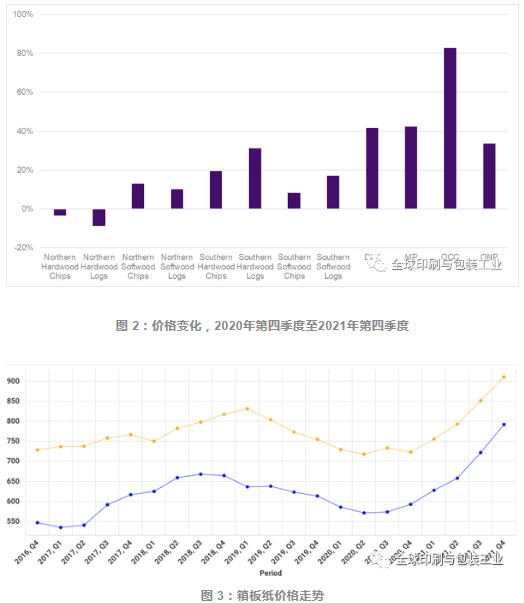 除了需求增加外,該行業(yè)的原材料纖維價格也有所上漲,尤其是廢紙價格。圖2說明了用于生產(chǎn)箱板紙的不同類型的原材料纖維,以及每種材料所經(jīng)歷的價格變化。