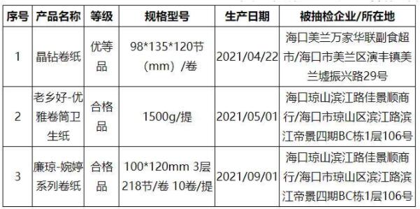 近日,海口市市場監督管理局公布了流通領域紙制品產品質量監督抽檢結果。記者了解到,此次共抽檢20批次產品,其中合格17批次,不合格3批次,合格率85%。涉及不合格產品的品牌為晶鉆、老鄉好、廉瓊3個品牌。 據介紹,此次抽檢依據我國《衛生紙(含衛生紙原紙)》,檢驗項目為可遷移性熒光物質、洞眼、柔軟度等項目。 記者了解到,不合格3批次產品不合格項目涉及紙制品的“柔軟度、偏差、偏斜度”。 分別為海口美蘭萬家華聯副食超市銷售的晶鉆卷紙(生產日期:2021/04/22;規格:98*135*120節(mm)/卷); 海口瓊山濱江路佳景順商行銷售的老鄉好-優雅卷筒衛生紙(生產日期:2021/05/01;規格:1500g/提); 海口瓊山濱江路佳景順商行銷售的廉瓊-婉婷系列卷紙(生產日期:2021/09/01;規格:100*120mm 3層 218節/卷 10卷/提)。 據了解,紙制品的“柔軟度”是衛生紙等紙與皮膚表面接觸擦拭時,需要具有一定的柔軟性,以增加肌膚的舒適感。不符合標準要求的產品會影響使用效果和舒適性;“偏差”是衛生紙等紙產品的尺寸偏差要求在一定范圍內,不符合標準的產品偏離過大,一是使消費者使用感降低,二是可能導致產品缺斤少兩,損害了消費者利益;“偏斜度”是指紙的長邊(或短邊)與其相對應的矩形長邊(或短邊)的偏差最大值。偏斜度不合格可能是生產企業工藝設計不合理或不按規定尺寸裁切紙張,紙張的偏斜度超出標準要求,會影響消費者的使用感。 據悉,此次抽查發現的不合格產品將由被抽檢者所在地的市場監督管理局依法處理。