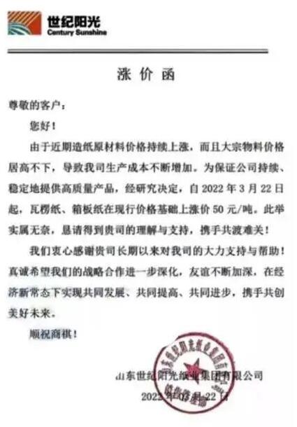 原材料價格持續上漲,包裝紙大廠集體提價 近幾日,紙業市場迎來一絲回暖跡象!據華印小編了解:山鷹國際、世紀陽光、明星紙業、建暉紙業、APP等多家大廠開始提價,漲幅在50-300元/噸,涉及白板紙、箱板紙、紗管紙、牛皮紙等多個紙種。 山鷹紙業:上調100-300元/噸