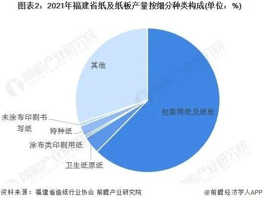從主要紙種產量來看,2021年福建省包裝用紙及紙板生產量為620.53萬噸,占全省機制紙及紙板總生產量的62.37%;衛生用紙原紙生產量38.89萬噸,占全省機制紙及紙板總生產量的3.91%。