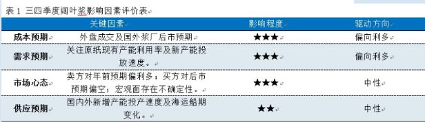 卓創資訊分析,短期漿市博弈持續加重,后期市場進入深度調整階段,漿價或維持震蕩整理態勢。影響價格走勢的因素分析如下:第一,8-9月份闊葉漿已公布外盤持續報平,從成本面支撐漿市;第二,三、四季度下游原紙仍有新增產能釋放,主要集中在白卡紙方面,利多于漿市需求放量,但需關注漿紙一體化項目投產對漿價的影響;第三,產品金融屬性因素及貨源問題影響下,對漿市供需均有影響;第四,智利MAPA項目延后投產及供應鏈的不確定性對市場的影響持續存在。 綜上所述,闊葉漿的新增產能壓力在年前暫不明顯,同時近期陸續到港闊葉漿貨源成本較高,而受制于闊葉漿貨源集中化問題影響,預計需求面在價格方面的作用相對弱于供應面;但國內需求放緩及成本面居高不下對下游原紙行業盈利能力的影響亦不可小覷,預計四季度闊葉漿價格或出現承壓運行態勢。建議關注供應端貨源流通速度、原紙行業開工、原紙實際價格變化、新產能投放及產品金融屬性帶來的影響。