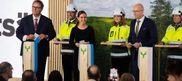 前排從左到右:Ilkka Hämälä, Sanna Marin, Jussi Linnaranta 2022年10月10日星期一,芬林集團旗下芬林芬寶新建的勞馬松木鋸材廠舉行了落成典禮。芬蘭總理桑娜·馬林(Sanna Marin)、芬林集團總裁兼首席執行官何亦凱(Ilkka Hämälä)和芬林控股集團公司董事會主席Jussi Linnaranta出席了剪彩儀式。 勞馬松木鋸材廠的建廠投資高達2.6億歐元,是芬蘭有史以來投資金額最高的鋸材廠。這項投資決策基于全球市場對可持續生產的優質鋸材需求的快速增長。