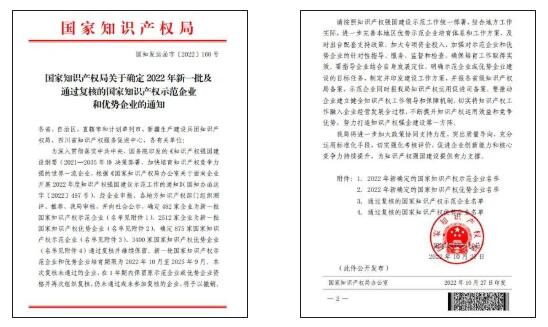 近日,國家知識產權局發布“關于確定2022年第一批及通過復核的國家知識產權示范企業和優勢企業通知”,泰格林紙順利通過國家知識產權優勢企業復核。