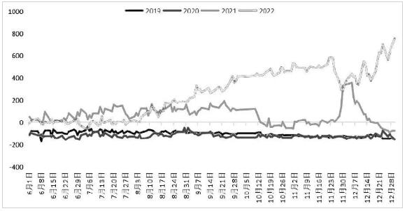 圖為紙漿期貨2301合約與2305合約價(jià)差(單位:元/噸) 綜合以上分析,供應(yīng)端改善預(yù)期有所加強(qiáng),但利空因素尚未兌現(xiàn),全球紙漿發(fā)運(yùn)量修復(fù)仍需時(shí)間,紙漿價(jià)格短期難以順暢下跌。從需求端來(lái)看,臨近春節(jié)假期,市場(chǎng)停機(jī)檢修情況有所增加,當(dāng)前行業(yè)利潤(rùn)率同比大幅下降,紙制品價(jià)格進(jìn)一步走弱,紙企開工積極性不高,以降低產(chǎn)成品庫(kù)存為主,偏弱的需求也不支持紙漿價(jià)格繼續(xù)上漲。因此,短期紙漿遠(yuǎn)月合約或維持窄幅振蕩運(yùn)行,供應(yīng)端壓力預(yù)計(jì)在一季度末才能有所體現(xiàn)。