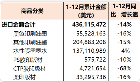 2022年1-12月國內印刷裝備進出口貿易順差12.16億美元(同比增長191%)。 印刷器材 表6 2022年1-12月國內印刷器材進口統計