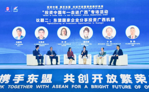 16日,由中國商務部、廣西壯族自治區人民政府舉辦的“投資中國年—走進廣西”專場活動在廣西南寧市舉行。在“東盟國家企業分享投資廣西機遇”圓桌對話環節,包括金光集團APP(中國)副總裁翟京麗在內的五位企業家著眼國內外發展大勢,緊扣廣西發展前景,分享投資廣西發展機遇。