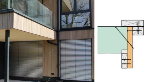 注釋:對于落地窗,房間高度和窗戶高度之間的微小差異為過梁提供的空間極其有限。十厘米長的窗過梁采用Kerto LVL制作可節省材料和空間。