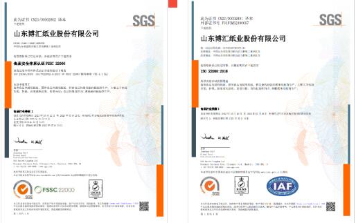 山東博匯紙業(yè)股份有限公司在今年5月份取得FSSC22000&ISO22000兩項(xiàng)食品安全體系證書后,于今年9月份在證書原有認(rèn)證范圍基礎(chǔ)上,對(duì)食品包裝用淋膜紙和紙板的生產(chǎn)與銷售進(jìn)行了擴(kuò)項(xiàng)認(rèn)證,并順利通過。