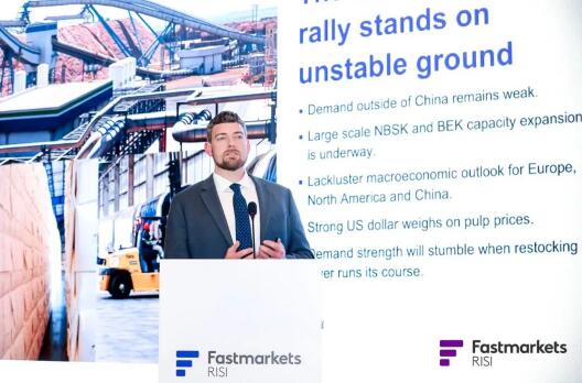 ▲Fastmarkets RISI纖維總監(jiān)趙會(huì)霞主持 Fastmarkets RISI高級經(jīng)濟(jì)師Patrick Cavanagh在報(bào)告中對全球紙漿市場進(jìn)行展望,包括分析商品漿周期演變、預(yù)測觸發(fā)紙漿價(jià)格下一次上漲的原因、以及解讀全球經(jīng)濟(jì)動(dòng)蕩對紙漿潛在需求產(chǎn)生的影響等;與此同時(shí),Patrick總結(jié)了產(chǎn)能擴(kuò)張最新情況,分析闊葉木片市場的最新趨勢,評估紙漿新產(chǎn)能對纖維的需求,最后與大家深入探討日益增長的進(jìn)口木片如何影響未來紙漿市場。
