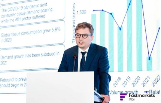 ▲Fastmarkets RISI高級經(jīng)濟(jì)師Patrick Cavanagh “生活用紙年度分享” 由Fastmarkets RISI歐洲生活用紙分析師Philipp Jaki帶來,他在報(bào)告中預(yù)測全球趨勢,分別展望北美、歐洲以及亞洲市場。