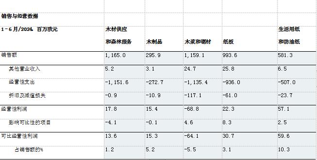 2024年1-6月(2023年1-6月同比數(shù)據(jù)) 銷售額為29.37億歐元(同比:31.16億歐元) 經(jīng)營性利潤為4600萬歐元(同比:4.02億歐元);可比經(jīng)營性利潤為5700萬歐元(3.8億歐元) 稅前利潤為1900萬歐元(同比:3.89億歐元);可比稅前利潤為3000萬歐元(同比:3.7億歐元) 可比已占用資本回報(bào)率為1.8%(同比:10.7%) 經(jīng)營性凈現(xiàn)金流負(fù)2.52億歐元(同比:1800萬歐元) 2024年4-6月(2023年4-6月同比數(shù)據(jù)) 銷售額為14.8億歐元(同比:14.81億歐元) 經(jīng)營性利潤為負(fù)1200萬歐元(同比:1.27億歐元);可比經(jīng)營性利潤為負(fù)1300萬歐元(同比:1.04億歐元) 稅前利潤為負(fù)2600萬歐元(同比:1.19億歐元);可比稅前利潤為負(fù)2700萬歐元(同比:9800萬歐元) 可比已占用資本回報(bào)率為-0.3%(同比:5.9%) 經(jīng)營性凈現(xiàn)金流為負(fù)1.14億歐元(同比:負(fù)1900萬歐元) 2024年上半年主要事件 芬林集團(tuán)長(zhǎng)纖漿在歐洲和中國的平均銷售價(jià)格較上一季度有所增長(zhǎng)。 歐洲和北美市場(chǎng)對(duì)針葉商品漿的需求強(qiáng)勁。在中國,商品漿的采購活動(dòng)有所減弱。 與上一季度相比,芬林集團(tuán)紙板產(chǎn)品的需求和價(jià)格保持穩(wěn)定。交貨量略有增加。 在對(duì)蒸發(fā)部門氣體爆炸造成的損壞進(jìn)行修復(fù)后,凱米生物制品廠于6月份重新投入生產(chǎn)。 4月,芬林紙板做出了升級(jí)辛佩萊(Simpele)工廠紙機(jī)的投資決定。 2024年5月13日,芬林集團(tuán)完成將旗下俄羅斯子公司的所有權(quán)轉(zhuǎn)讓給VLP集團(tuán)的交易。2022年,芬林集團(tuán)停止了在俄羅斯的業(yè)務(wù)運(yùn)營,包括斯維爾(Svir)鋸材廠、木材供應(yīng)和紙板銷售。5月完成交易后,芬林集團(tuán)在俄羅斯不再擁有任何資產(chǎn)。該交易對(duì)財(cái)報(bào)期內(nèi)的經(jīng)營成果產(chǎn)生了1380萬歐元的影響。 2024年7-9月業(yè)績(jī)展望 與2024年4-6月相比,芬林集團(tuán)7-9月的可比經(jīng)營性利潤預(yù)計(jì)將有所改善。 芬林集團(tuán)總裁與首席執(zhí)行官何亦凱(IlkkaHämälä): 2024年上半年,芬林集團(tuán)的財(cái)務(wù)狀況非常不景氣。這是由于銷售價(jià)格(尤其是紙漿和紙板)同比下降,以及木材成本持續(xù)上升。在財(cái)報(bào)期內(nèi),因政治罷工導(dǎo)致營業(yè)利潤損失6000萬歐元。凱米(Kemi)生物制品廠蒸發(fā)部門發(fā)生的氣體爆炸使可比營業(yè)利潤在保險(xiǎn)賠償前減少了約1億歐元。盡管數(shù)據(jù)黯淡,我們的許多業(yè)務(wù)都取得了積極的發(fā)展。在歐洲,紙漿市場(chǎng)在第二季度表現(xiàn)強(qiáng)勁,價(jià)格水平也在不斷提高。2024年對(duì)原生纖維紙板的需求與去年創(chuàng)紀(jì)錄的低水平相比明顯有所改善。盡管建筑行業(yè)持續(xù)疲軟,但Kerto®LVL(單板層積材)在價(jià)格和需求方面都保持了穩(wěn)定和良好的水平。生活用紙的盈利狀況仍在合理范圍,但原材料價(jià)格對(duì)業(yè)績(jī)水平有很大影響。在我們所有的產(chǎn)品類別中,目前只有鋸材和云杉膠合板的疲軟周期仍在繼續(xù),它們直接受到了建筑業(yè)低迷情緒的影響。 年初,我們繼續(xù)為集團(tuán)的未來發(fā)展做工作。我們的Kuura®紡織纖維項(xiàng)目已進(jìn)入下一階段,我們將在該階段探索工業(yè)投資的機(jī)會(huì)。示范工廠將繼續(xù)運(yùn)營,為市場(chǎng)生產(chǎn)紡織品原料,以獲得客戶反饋。 位于芬蘭勞馬(Rauma)的模塑MuotoTM纖維基包裝工業(yè)規(guī)模工廠的前期工程項(xiàng)目正在進(jìn)展中。今年下半年,我們?cè)诎瑑?nèi)科斯基(Äänekoski)的示范工廠將從開發(fā)活動(dòng)轉(zhuǎn)向?yàn)樽罱K客戶生產(chǎn),為工廠的工業(yè)化階段尋求產(chǎn)品開發(fā)反饋。該產(chǎn)品的主要最終用途是替代化石材料用于食品包裝。我們還在研究于艾內(nèi)科斯基建造的示范工廠提煉木質(zhì)素的問題。木質(zhì)素可用于替代許多化學(xué)工業(yè)產(chǎn)品中的化石原料。它的第一個(gè)應(yīng)用領(lǐng)域?qū)⑹腔炷列袠I(yè)中使用的添加劑。從紙漿行業(yè)的燃燒氣體中捕捉碳的研究是一個(gè)非常廣泛和重要的開發(fā)項(xiàng)目。歐盟未來更嚴(yán)格的碳捕集目標(biāo)包括大量技術(shù)碳捕集計(jì)劃。芬林集團(tuán)的碳捕集潛力每年超過1000萬噸,但該項(xiàng)目在技術(shù)方面極具挑戰(zhàn)性,并且需要立法支持捕集碳的使用。 這些大型開發(fā)項(xiàng)目的準(zhǔn)備和潛在實(shí)施需要芬林集團(tuán)的現(xiàn)有業(yè)務(wù)保持競(jìng)爭(zhēng)力,并為開發(fā)投入創(chuàng)造現(xiàn)金流。芬林集團(tuán)主要產(chǎn)品的市場(chǎng)正在不斷擴(kuò)大,我們?cè)谶x定的產(chǎn)品細(xì)分市場(chǎng)中擁有強(qiáng)大的地位。紙漿行業(yè)對(duì)芬蘭林業(yè)極為重要,其形勢(shì)與我們作為全球最大的針葉商品漿生產(chǎn)商的市場(chǎng)地位相匹配。 芬林芬寶的所有四家工廠在針葉漿生產(chǎn)方面都具有世界一流的績(jī)效表現(xiàn),其中凱米和艾內(nèi)科斯基工廠與競(jìng)爭(zhēng)對(duì)手相比更是獨(dú)樹一幟。在歐洲和美國,芬林紙板的折疊紙板產(chǎn)品在高要求細(xì)分市場(chǎng)中處于領(lǐng)先地位。去年完成的胡蘇姆(Husum)紙機(jī)產(chǎn)能升級(jí)擴(kuò)建工程使其成為歐洲效率最高的設(shè