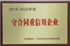 鑒于企業連續多年獲得該項榮譽,2024年12月31日,欽州市市場監督管理局三級調研員黃敏一行到金桂,進行了2018-2022年度廣西“守合同重信用企業”特別榮譽牌匾授牌儀式。