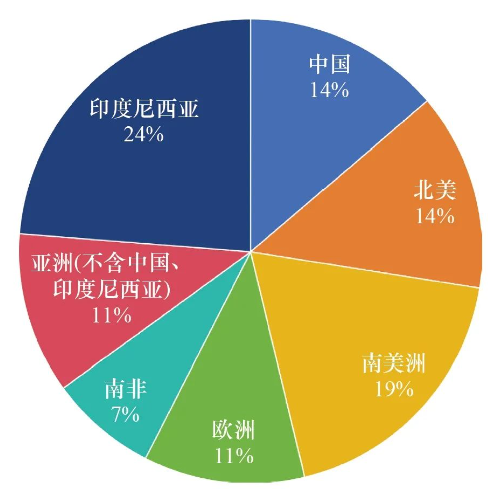 核心提示 基于2024 年全球及國(guó)內(nèi)溶解漿的產(chǎn)能、產(chǎn)量、下游市場(chǎng)動(dòng)態(tài)以及中國(guó)溶解漿進(jìn)口的海關(guān)數(shù)據(jù),結(jié)合當(dāng)年產(chǎn)業(yè)鏈各環(huán)節(jié)發(fā)生的重大事件和關(guān)鍵時(shí)間節(jié)點(diǎn),筆者對(duì)2024 年的溶解漿市場(chǎng)進(jìn)行了全面總結(jié)。在此基礎(chǔ)上,進(jìn)一步展望了2025 年溶解漿市場(chǎng)的可能發(fā)展趨勢(shì)。 關(guān)鍵詞:溶解漿;黏膠短纖維;萊賽爾;纖維素醚;進(jìn)出口 2024 年,全球溶解漿產(chǎn)量顯著增長(zhǎng),總量攀升至約800 萬(wàn)t,與2023 年的610 萬(wàn)t 相比,增幅高達(dá)31.15%。根據(jù)2024 年全球溶解漿產(chǎn)量的地域分布情況(見(jiàn)圖1),亞洲、美洲、歐洲和非洲為主要的生產(chǎn)區(qū)域,共同貢獻(xiàn)了全球溶解漿產(chǎn)量的絕大部分份額。