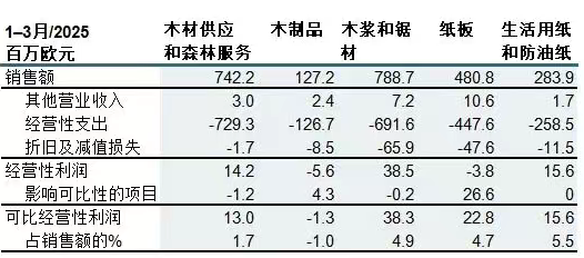 2025年1-3月 (2024年1-3月同比數(shù)據(jù)) 銷售額為16.42億歐元(同比:14.57億歐元) 經(jīng)營性利潤為5100萬歐元(同比:5800萬歐元);可比經(jīng)營性利潤為8100萬歐元(7000萬歐元) 稅前利潤為3700萬歐元(同比:4500萬歐元);可比稅前利潤為6700萬歐元(同比:5700萬歐元) 可比已占用資本回報(bào)率為4.4%(同比:4.0%) 經(jīng)營性凈現(xiàn)金流為-1000萬歐元(同比:-1.37億歐元) 2025年第一季度主要事件 與2024年第四季度相比,芬林集團(tuán)商品針葉漿在歐洲的平均銷售價(jià)格持平,在中國的平均銷售價(jià)格上漲了3%。 歐洲和北美市場對(duì)商品針葉漿的需求保持穩(wěn)定。在中國,年初的需求水平較好,但在三月份有所下降。由于之前的產(chǎn)能關(guān)停,全球針葉漿供應(yīng)量有所下降。 芬林集團(tuán)的紙板交付量比上一季度有所增加。紙板平均價(jià)格與 2024 年基本持平。 芬林紙板決定關(guān)閉芬蘭塔科(Tako )紙板廠,同時(shí)將提高基洛(Kyro) 紙板廠的運(yùn)營效率。 芬林集團(tuán)于2月啟動(dòng)了 Kuura 紡織纖維廠的前期工程,為其工業(yè)化生產(chǎn)做準(zhǔn)備。 位于德國的克勞紹(Kreuzau)生活用紙廠正在進(jìn)行產(chǎn)能調(diào)整和設(shè)備更新計(jì)劃。芬蘭曼塔(Mänttä )生活用紙廠正在投資用于原生纖維加工以及設(shè)備更新,并計(jì)劃逐步淘汰回收纖維的使用。目前這兩家工廠均在進(jìn)行變更談判。 萬赫寧(Jussi Vanhanen)將于 2025 年 7 月 1 日起擔(dān)任芬林集團(tuán)首席執(zhí)行官。 2025年4-6月的業(yè)績展望 2025 年 4 月至 6 月,芬林集團(tuán)的可比經(jīng)營性利潤預(yù)計(jì)將低于 2025 年 1 月至 3 月。