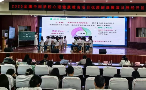 5月22日,在全國心理健康日來臨之際,“金鷹中國學校心理健康教育項目優質班課展演暨中科院專家督導活動”在日照經濟技術開發區中學舉辦,經開區心理健康專兼職教師及重點班級班主任67人觀摩學習;顒悠陂g,由心理健康專家團隊專為本項目開發的心理健康測評程序也同步在經開區正式啟用。 創新課堂展心育智慧,多元體驗促心靈成長 在優質班課展示環節,開發區中學安靜老師以班課的形式,結合團體動力、能量互助和心靈成長,通過體驗同心能量圈,引導學生從被動接收轉為主動共創,讓同學們感受同伴之間的關愛支持和合作互助,為應對成長挑戰儲備心理能量。