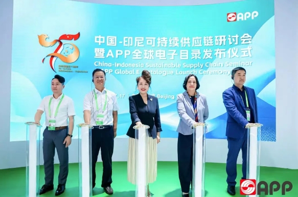 中國國際貿(mào)易促進委員會會長、黨組書記任鴻斌蒞臨APP展臺出席活動 儀式現(xiàn)場,金光集團APP副總裁翟京麗作開場致辭,印度尼西亞共和國駐華使館經(jīng)濟處公使銜參贊娜迪婭作嘉賓致辭。來自供應鏈上下游的合作伙伴代表蒞臨展臺,共同見證APP全球電子目錄的發(fā)布,并圍繞“跨境產(chǎn)業(yè)鏈協(xié)同下的新機遇”這一議題展開圓桌探討。