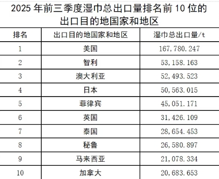 進口 2025年前三季度,中國濕巾總進口量較上年同期增長1.93%,但總量僅為1.96萬t,國內市場對進口濕巾需求較少。 注:目前,在海關的商品編碼中將清潔濕巾歸入34011990.消毒濕巾歸入38089400.但是這兩個編碼下不只是濕巾產品,還包括其他清潔、消毒產品。