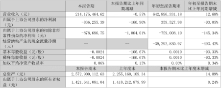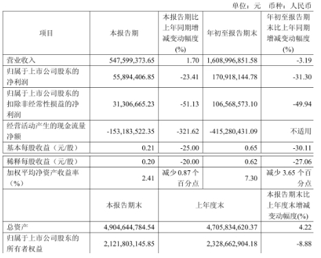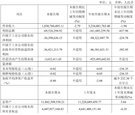 冠豪高新(600433) 公司實(shí)現(xiàn)營業(yè)總收入52.34億元,同比下降1.94%;歸母凈利潤虧損9432.39萬元,上年同期盈利6998.55萬元。