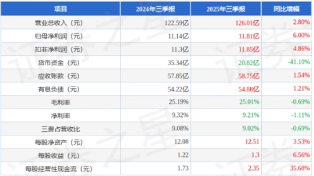 裕同科技(002831) 公司營業(yè)總收入126.01億元,同比上升2.8%,歸母凈利潤11.81億元,同比上升6.0%。