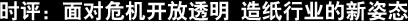 周在峰:從被動(dòng)保守封鎖消息到主動(dòng)敞開大門接受公眾的監(jiān)督,造紙業(yè)在危機(jī)公關(guān)的處理上前進(jìn)了一大步。太陽紙業(yè)率先在全國首推“公眾開放日”,以開放的態(tài)度 迎接國內(nèi)眾多媒體和海內(nèi)外各界人士的參觀和監(jiān)督,這應(yīng)該是中國企業(yè)發(fā)展史上的一個(gè)“重大事件”,具有積極的標(biāo)桿意義,值得各個(gè)行業(yè)的企業(yè)給予關(guān)注。 |