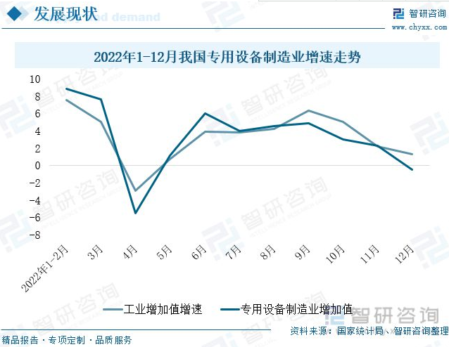 內(nèi)容概要:造紙設(shè)備是專業(yè)性很強的行業(yè),涉及機械、化工、材料、防腐等多個技術(shù)性領(lǐng)域。在“制造強國”戰(zhàn)略及相關(guān)政策引導(dǎo)下,造紙設(shè)備行業(yè)參與者逐漸增多。隨著造紙設(shè)備生產(chǎn)商紛紛加大研發(fā)力度及航空、造船等跨行業(yè)投資者參與布局造紙機械設(shè)備的研發(fā)生產(chǎn),行業(yè)技術(shù)水平逐步提高。截至2022年底,我國合計擁有2273想造紙設(shè)備相關(guān)專利,其中實用新型專利1670項,發(fā)明專利578項。隨著行業(yè)自主創(chuàng)新能力不斷加強,及下游需求拉動下,造紙設(shè)備國產(chǎn)化進程也不斷加快。 關(guān)鍵詞:造紙設(shè)備、紙漿、生活用品紙 一、制造業(yè)整體呈恢復(fù)向好發(fā)展,行業(yè)營業(yè)收入穩(wěn)步增長 2022年以來,在國際大宗商品價格高位運行及疫情多地反復(fù)爆發(fā)影響下,國內(nèi)制造業(yè)受到一定沖擊,但在國家統(tǒng)籌調(diào)控下,我國制造業(yè)呈恢復(fù)向好態(tài)勢。2022年,全國規(guī)模以上工業(yè)生產(chǎn)保持穩(wěn)定恢復(fù)態(tài)勢,增加值較上年增長3.6%。造紙設(shè)備是專用設(shè)備制造業(yè)的細分領(lǐng)域,2022年以來,我國專用設(shè)備制造業(yè)增加值增速與工業(yè)增加值增速走勢基本保持一致。2022年1-4月,受多地疫情及俄烏沖突導(dǎo)致的能源價格上漲影響,專用設(shè)備生產(chǎn)企業(yè)經(jīng)營受到較大沖擊,行業(yè)增加值增速降至-5.5%,位于臨界點以下。5-6月,隨著穩(wěn)經(jīng)濟一攬子政策措施,企業(yè)復(fù)工復(fù)產(chǎn)加快,專用設(shè)備制造業(yè)增加值增速迅速提升。7-9月,國家出臺了一系列推動工業(yè)經(jīng)濟平穩(wěn)健康發(fā)展的措施,專用設(shè)備制造業(yè)增速保持穩(wěn)定增長。10-12月,外部不確定性上升,制造業(yè)面臨較大壓力,專用設(shè)備制造業(yè)增速持續(xù)下滑;其中12月隨著防疫政策優(yōu)化調(diào)整,新冠感染量大幅增加,專用設(shè)備制造業(yè)增速下降至-0.5%,降至臨界點以下,行業(yè)生產(chǎn)有所回落。